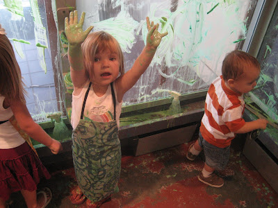 We took the kids to the Bay Area Discovery Museum. They really love it. They especially love the painting on the windows. Kaden refuses to wear an apron.